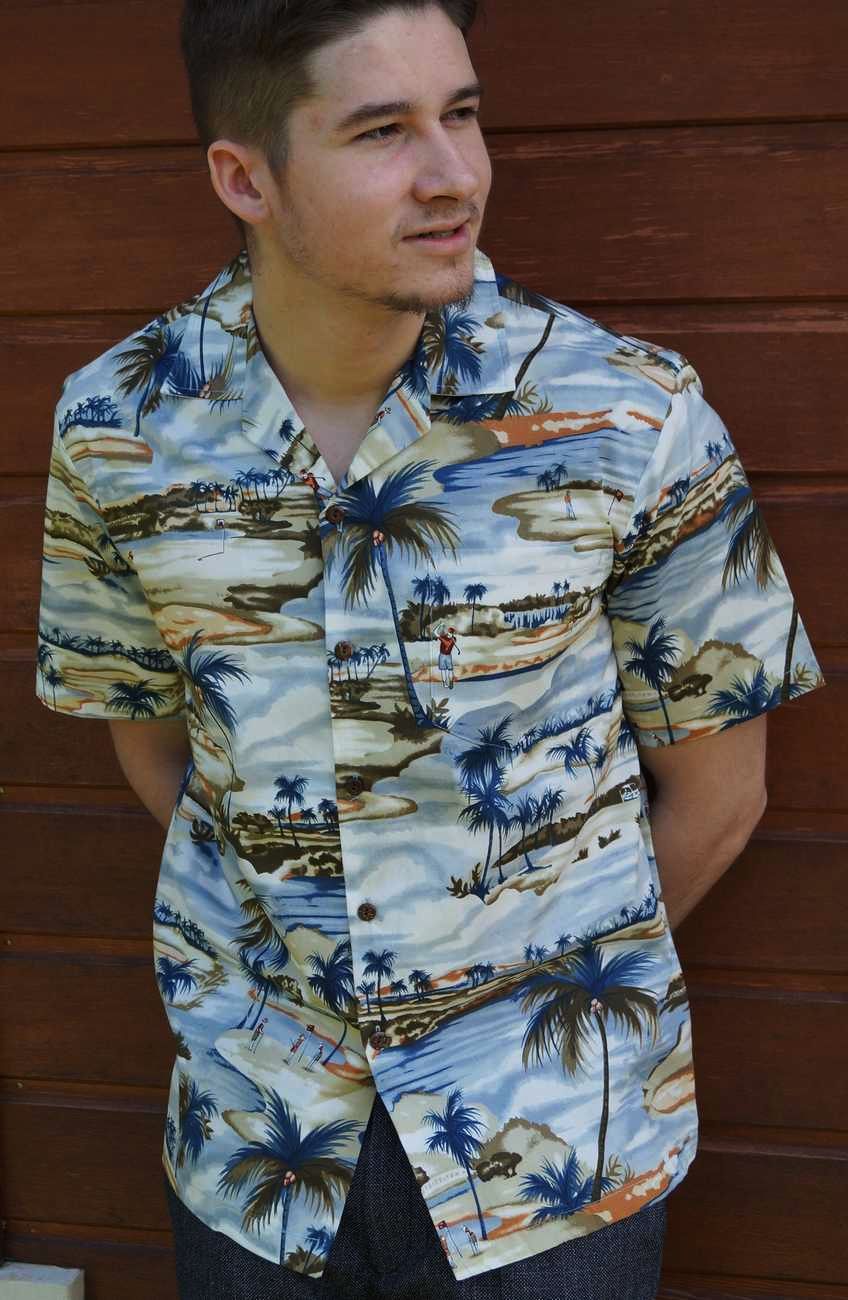 Authentique Chemise Hawaienne Oahu Golf Club Bleu. La Véritable